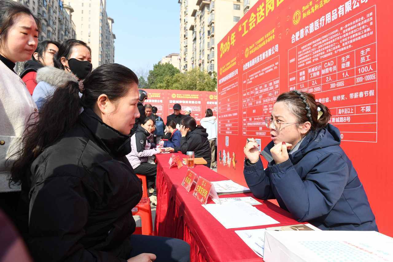 3月10日上午,2026年“工会送岗位 乐业在江淮”合肥新站高新区就业服务招聘会在安徽省合肥市新站工人文化宫举办。
