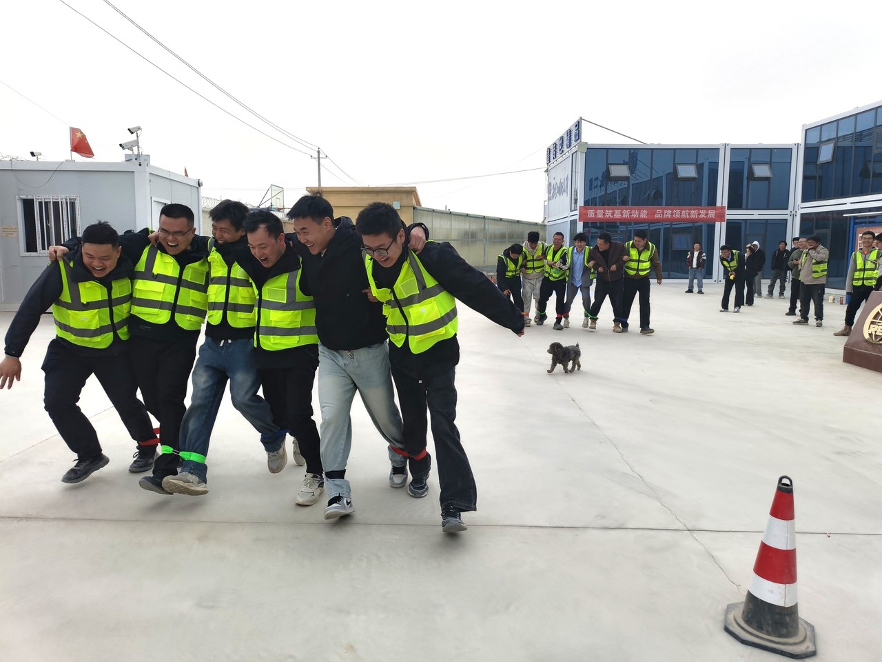 在心理辅导之后,一场别开生面的趣味文体活动在项目部火热展开。“一二一!一二一!”在整齐的口号声中,职工们肩并着肩、腿绑着腿,玩起了“同心才能走得更远”游戏。屏息凝神、手腕轻抖……套圈游戏中,大家展现出建设者特有的专注与精准。“砰!”随着罐子应声倒地,工作中的压力也仿佛随之释放,这个游戏则成为员工们宣泄情绪、重拾轻松的最佳出口。作为压轴项目,拔河比赛将活动推向高潮。
