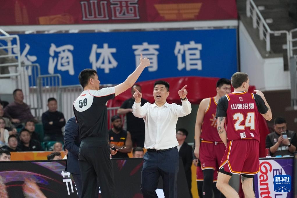 3月11日,山西汾酒队球员葛昭宝在比赛中和裁判沟通。新华社记者 杨晨光 摄