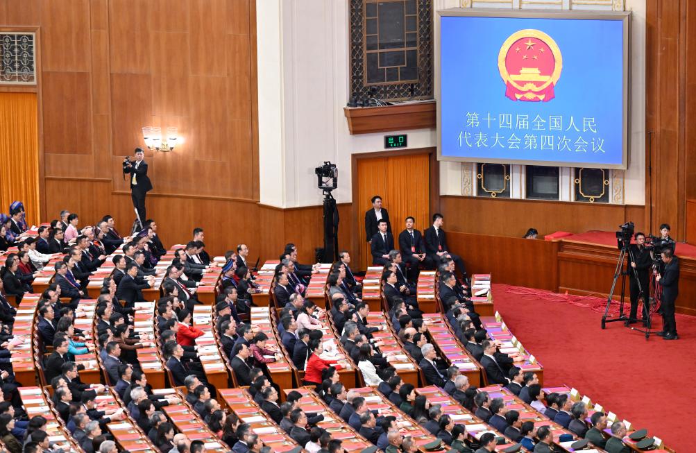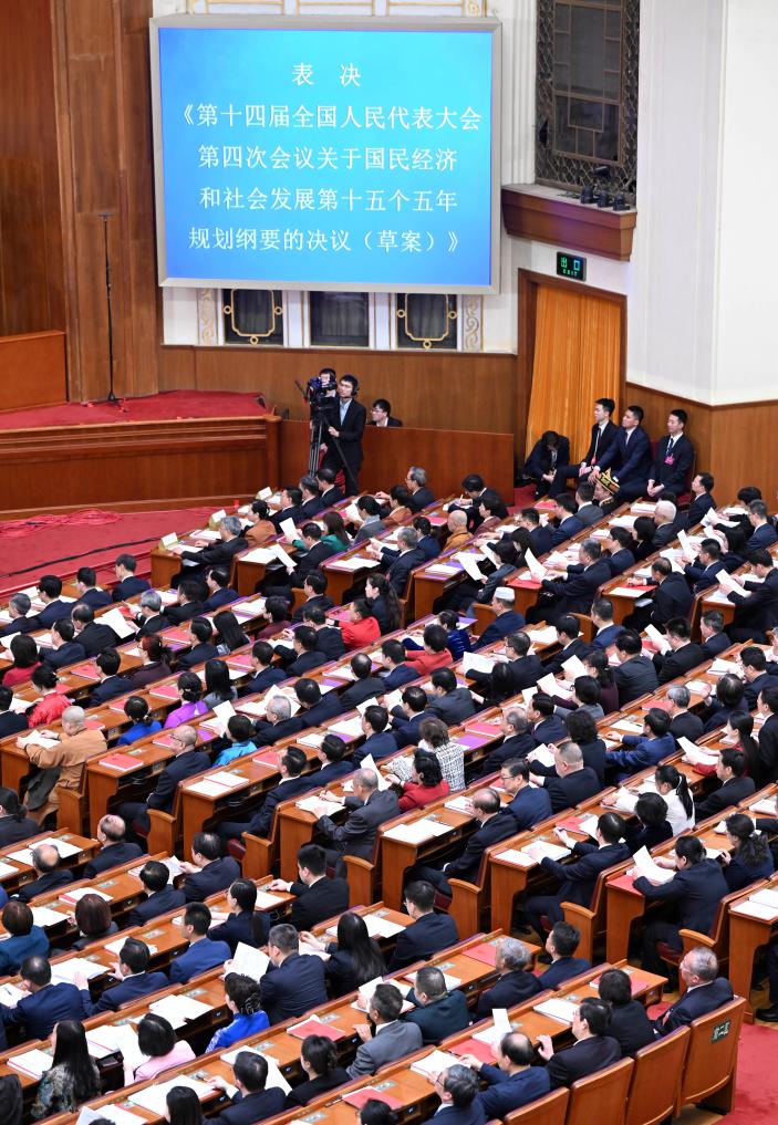 3月12日,十四届全国人大四次会议在北京人民大会堂举行闭幕会。新华社记者 饶爱民 摄