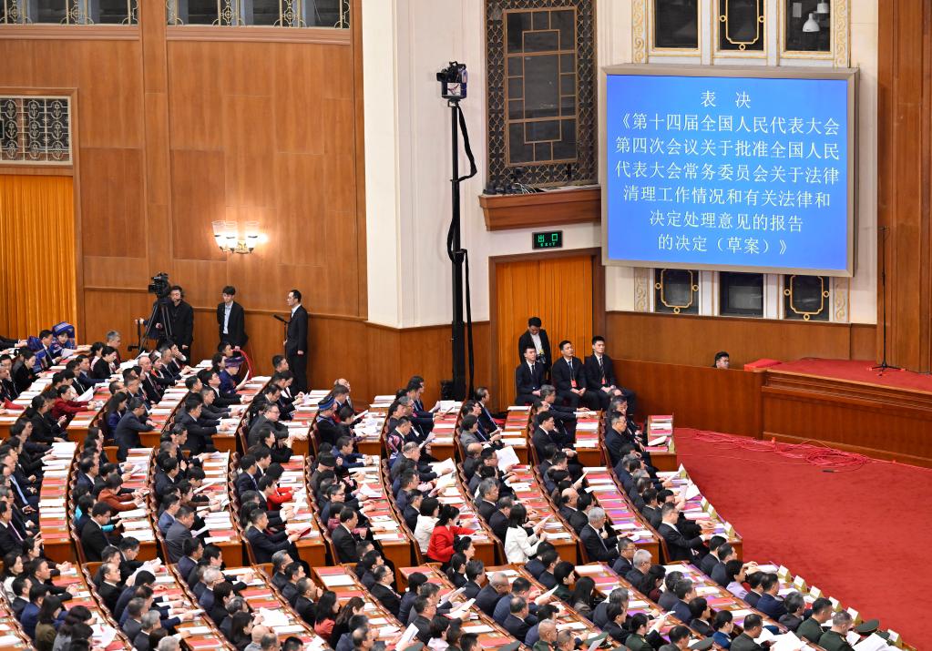 3月12日,十四届全国人大四次会议在北京人民大会堂举行闭幕会。新华社记者 翟健岚 摄