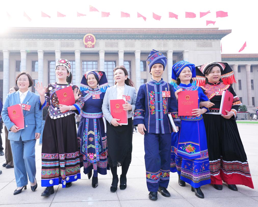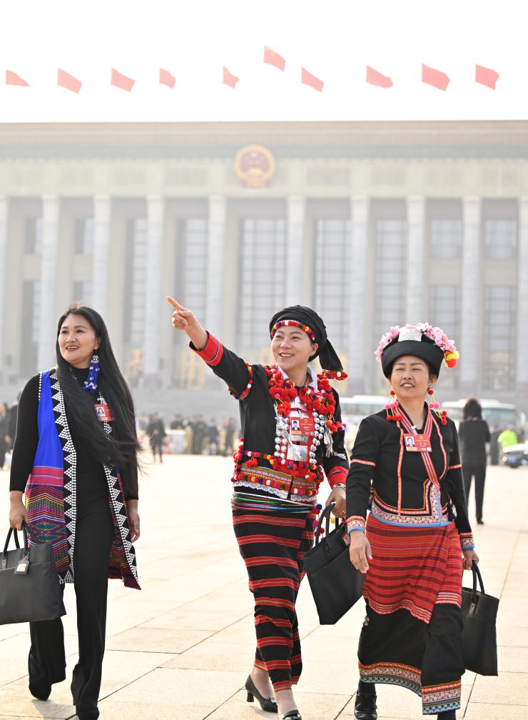 3月12日,十四届全国人大四次会议在北京人民大会堂举行闭幕会。这是闭幕会后,代表们走出人民大会堂。新华社记者 陈晔华 摄