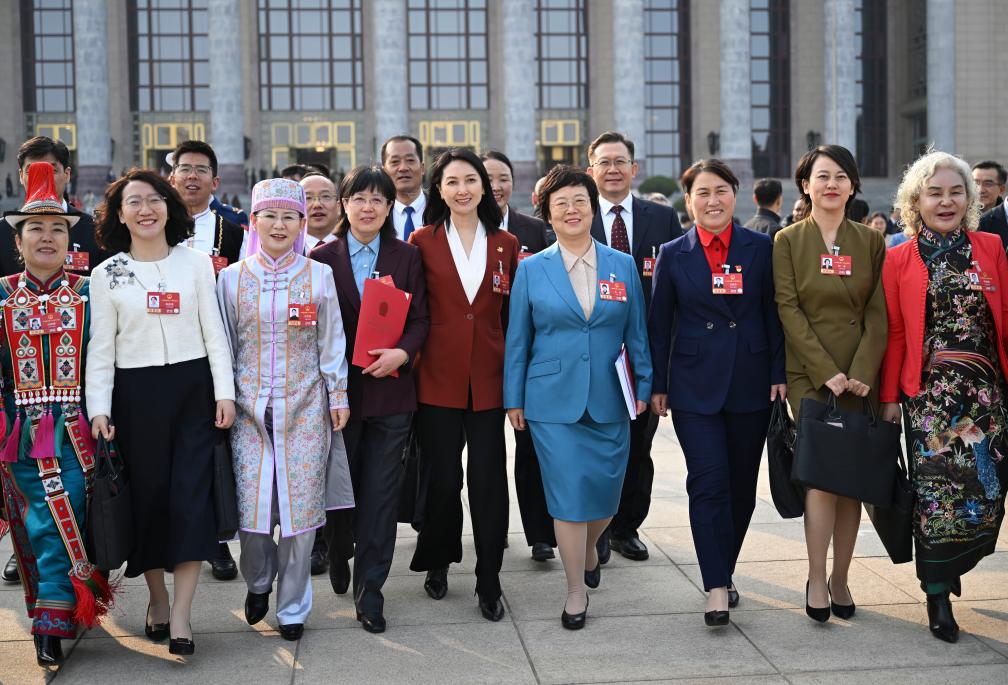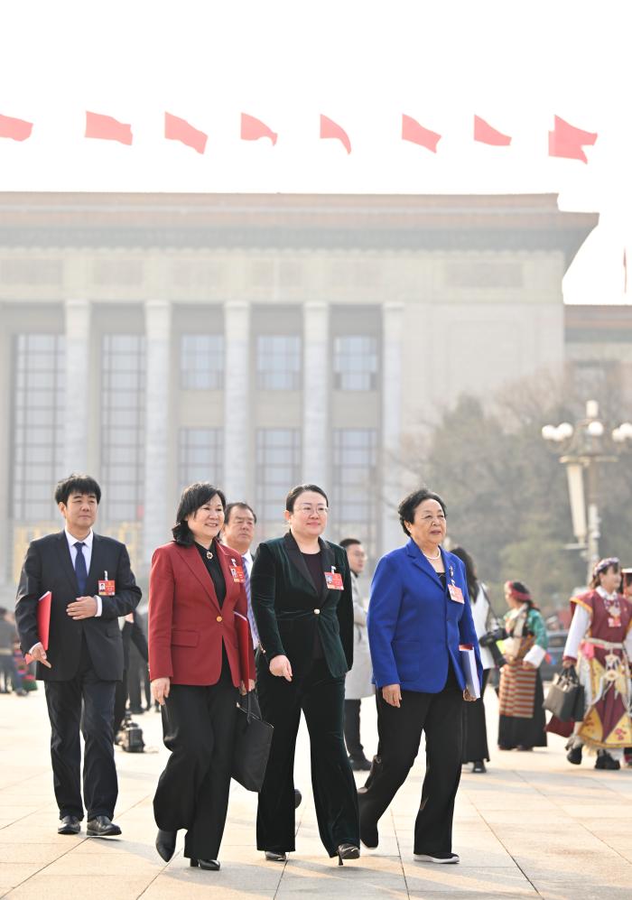 3月12日,十四届全国人大四次会议在北京人民大会堂举行闭幕会。这是闭幕会后,代表们走出人民大会堂。新华社记者 陈益宸 摄