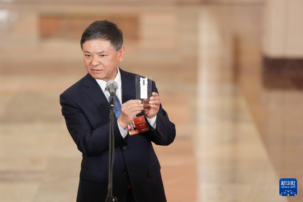 生态环境部部长黄润秋3月12日在十四届全国人大四次会议第三场“部长通道”展示了一块环境DNA测序芯片。他说,这个芯片包含长江江苏段19个断面水生生物的DNA监测信息,显示这个河段近5年来水生生物增加了20多种。(记者高敬、于佳欣)