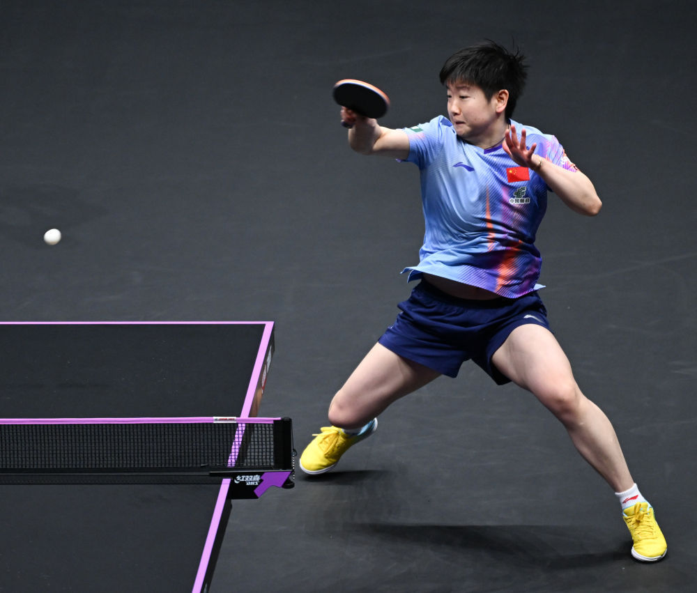 3月13日,孙颖莎在比赛中回球。新华社记者 陈诚 摄