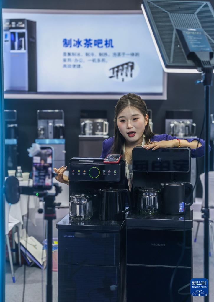 3月16日,工作人员在展示家用咖啡机和制冰机。新华社记者 徐昱 摄