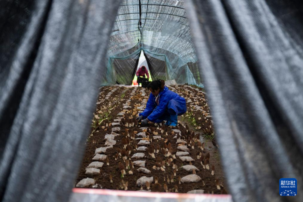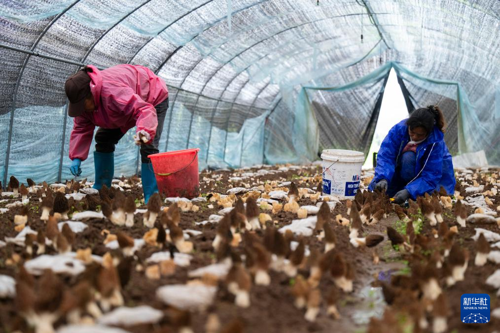 3月15日,在远安县恒昌食用菌专业合作社,工作人员在采摘新鲜羊肚菌。新华社记者 伍志尊 摄