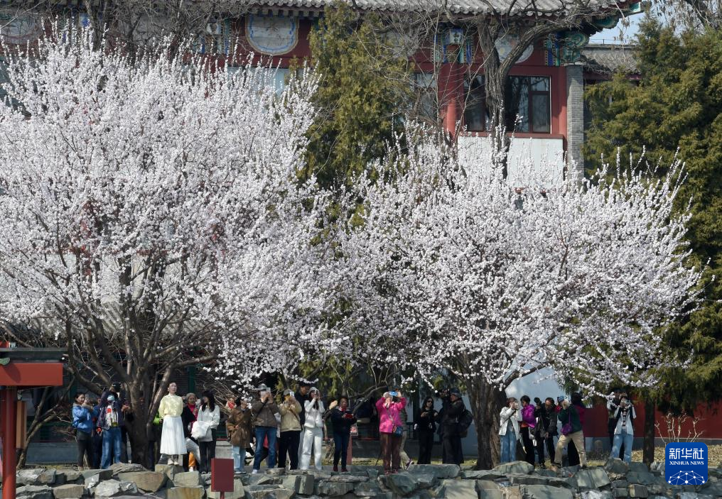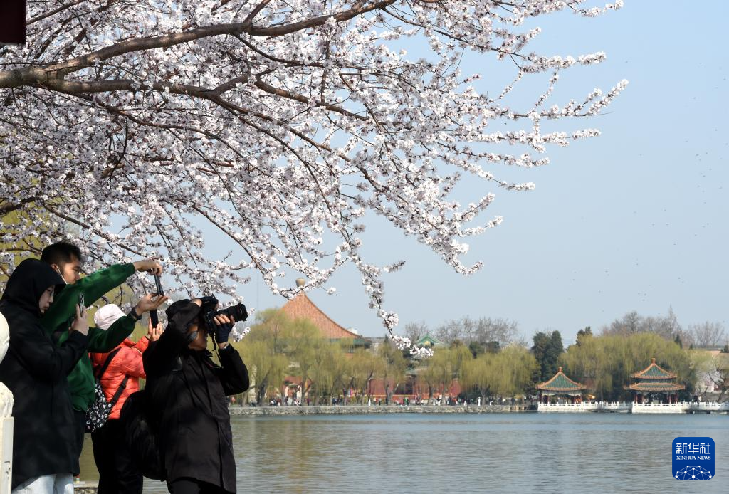 3月16日,游客在北京北海公园拍摄照片。新华社记者 罗晓光 摄