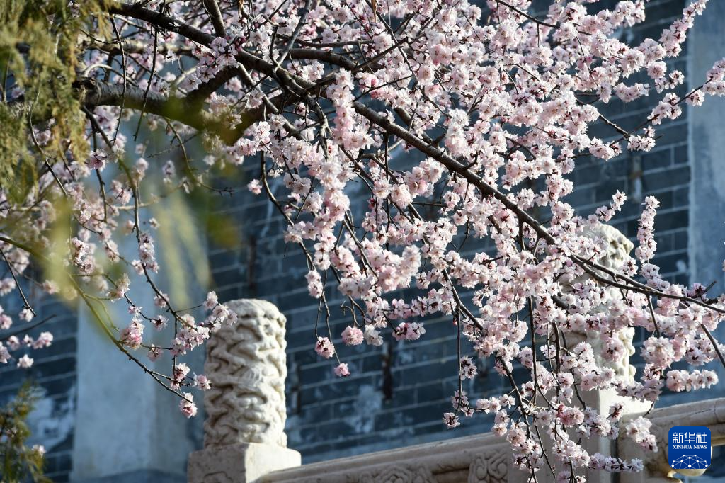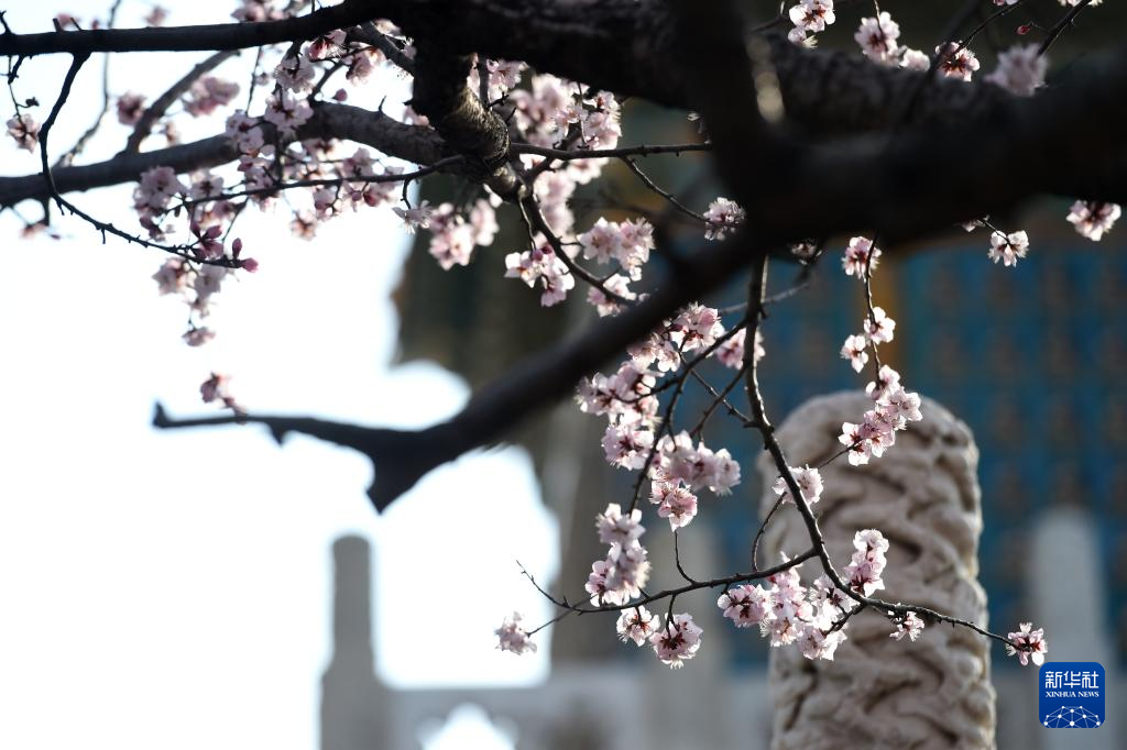 3月16日在北京北海公园拍摄的山桃花。新华社记者 罗晓光 摄