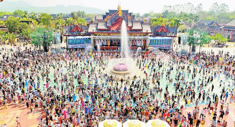 在位于景洪市勐罕镇的AAAA级旅游景区傣族园,泼水广场上万人同泼吉祥水,飞溅的水花与游客的笑声交织成欢乐的海洋。“我们每天下午举办3场泼水狂欢活动,能同时容纳上万人的广场几乎场场爆满。”傣族园景区副总经理欧成林介绍,景区持续人气爆棚,春节假期接待游客21.87万人次,单日入园人数最高达34870人。