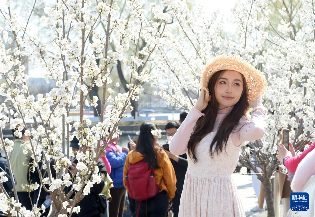 3月19日,一名游客在北京玉渊潭公园留影。新华社记者 罗晓光 摄