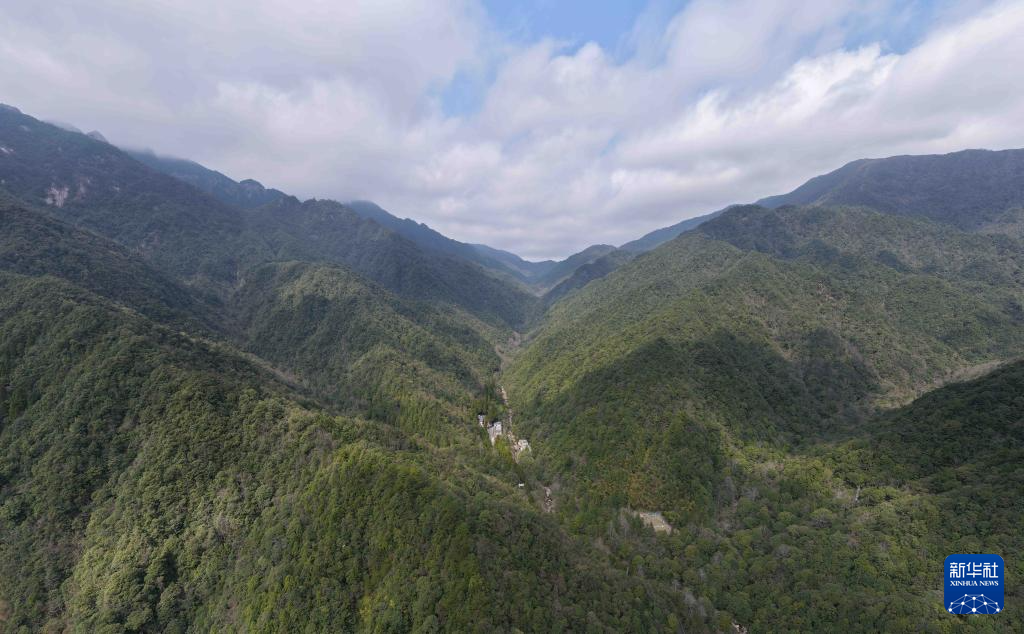 坐落于南岭山脉中的广东省乳阳林场八宝山管护站(3月17日摄,无人机照片)。新华社记者 邓华 摄
