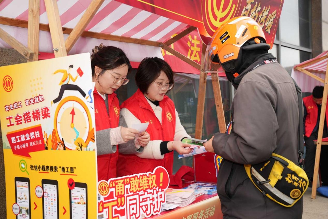 活动现场设置维权咨询、中医义诊、反诈宣传、工惠悦读等16个服务摊位,集实用服务与趣味互动于一体。甬工骑士志愿者或引导人流,或解答疑问,或化身“摊主”传授技能,成为现场流动的“志愿名片”。