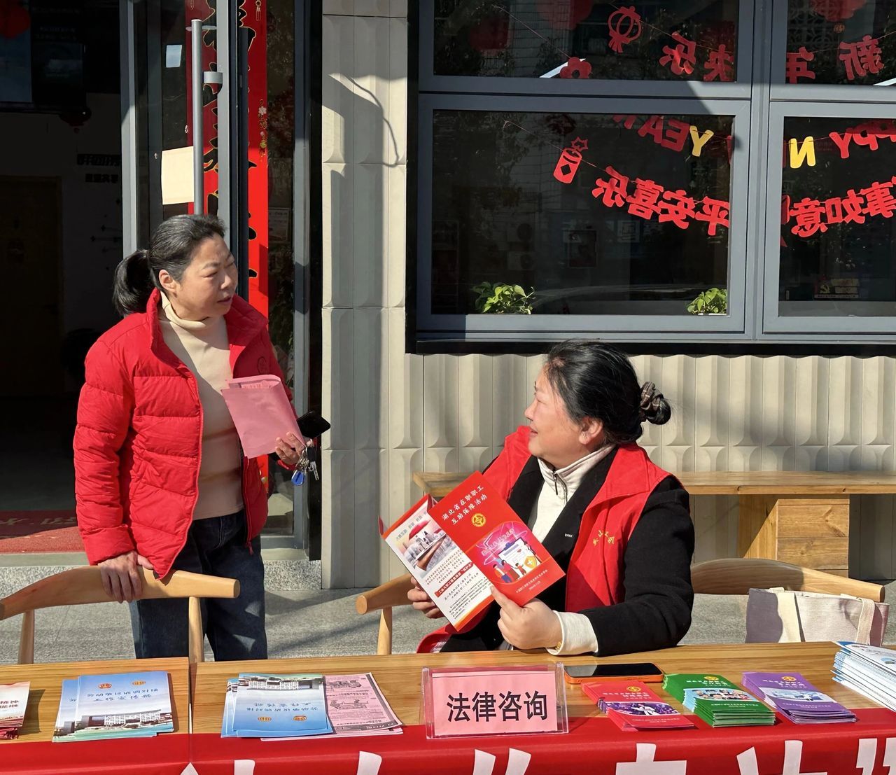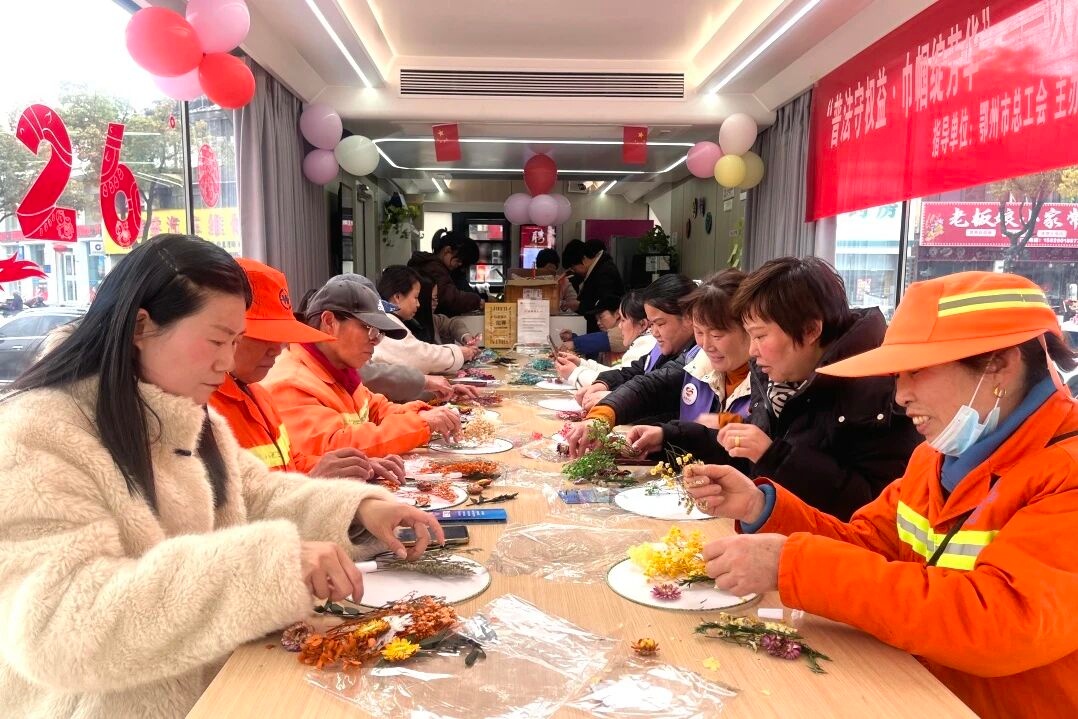 英山县总工会携手县妇联,依托职工服务中心爱心驿站开展普法宣传。工作人员围绕工会法等法律法规,通过发放手册、现场答疑等方式普及法律知识,并针对交通安全、劳动保护等进行实用讲解。活动还邀请工友家政负责人到场,为有求职意向的女职工提供养老护理、母婴照护等技能指导,并专项解读生育津贴、职业技能补贴等惠民政策。