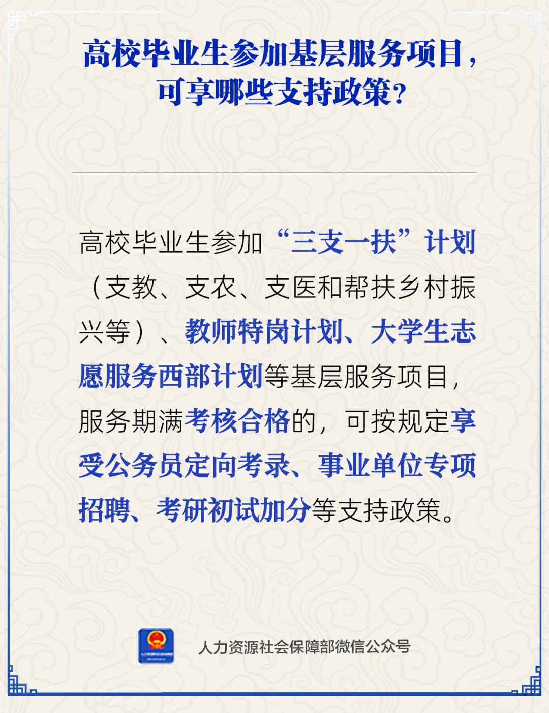 高校毕业生参加基层服务项目,可享哪些支持政策?