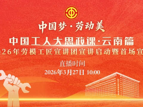 直播回顾|“中国工人大思政课·云南篇”2026年劳模工匠宣讲团宣讲启动暨首场宣讲与您相约云端为贯彻落实全国总工会关于创新打造“中国工人大思政课”的有关要求,由云南省总工会主办、云南省建设投资控股集团有限公司工会承办的“中国工人大思政课·云南篇”2026年劳模工匠宣讲团宣讲启动暨首场宣讲即将于2026年3月27日举办。2026年3月27日(星期五)10:00,中工网首页、微博、视频号同步播出。