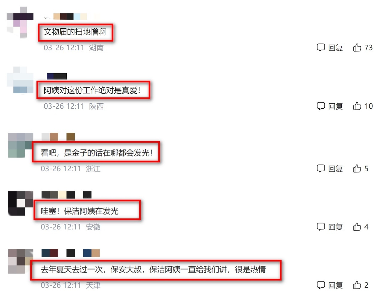 博物馆也回应,馆里不止保洁阿姨,保安叔叔们也同样热情,指路、答疑、讲文物,藏不住的是对本土文化的自豪。