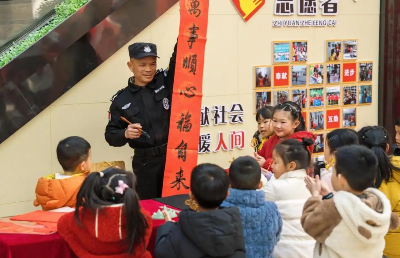 到图书馆工作后,他成了读者眼中的“扫地僧”,在春节为大家写春联送祝福,还受邀到温州园博园,和书法名家同台为市民送福。