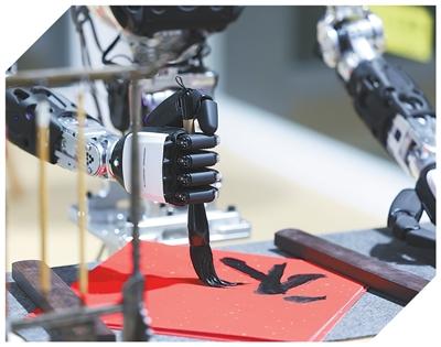 人形机器人在展示写毛笔字。人民日报记者 张武军摄