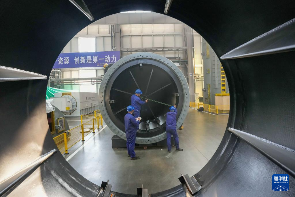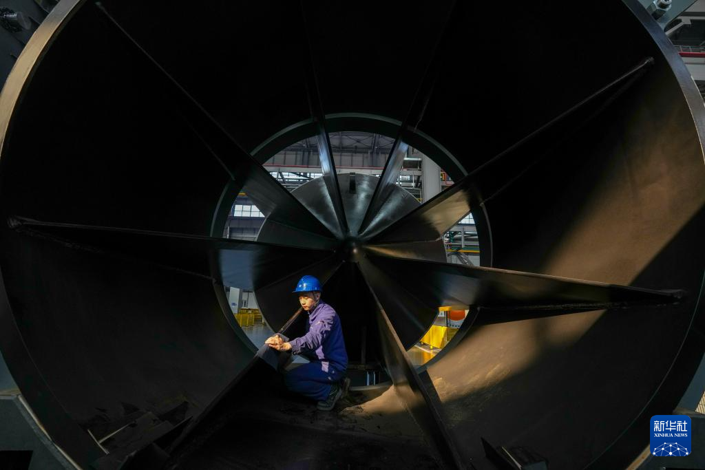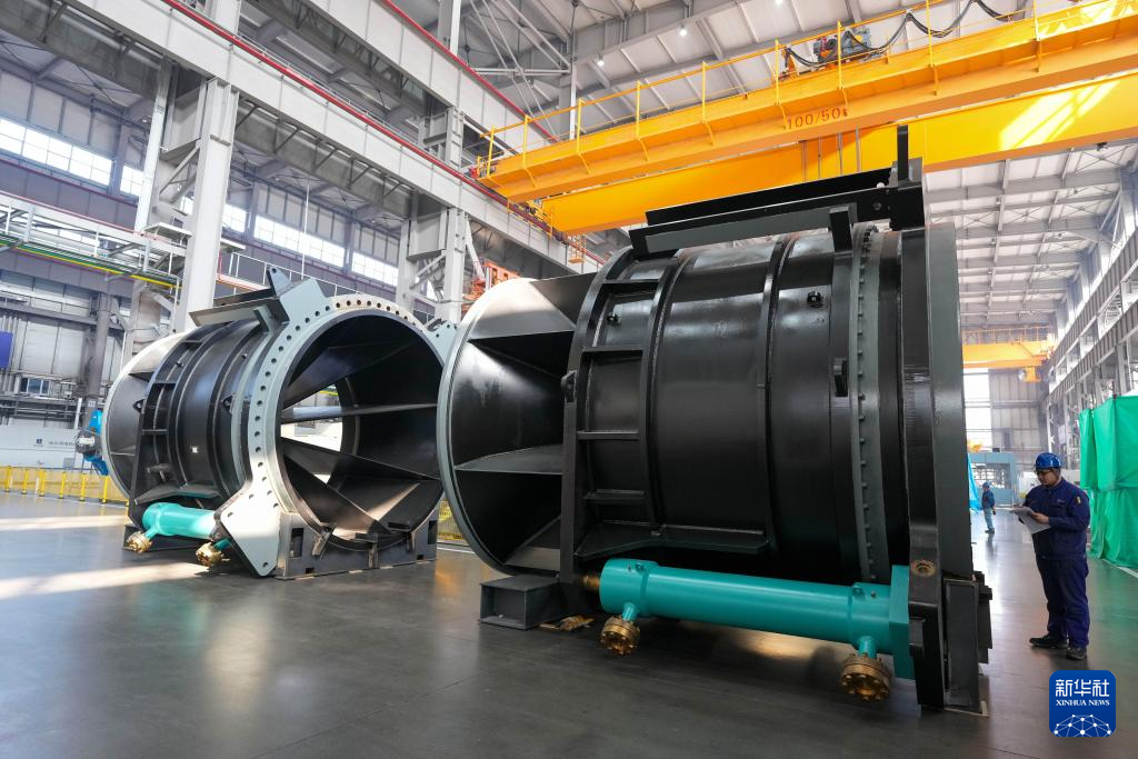 这是3月31日在哈电集团哈尔滨电机厂有限责任公司拍摄的该公司自主研制的巨型水电泄压阀。新华社记者 王建威 摄