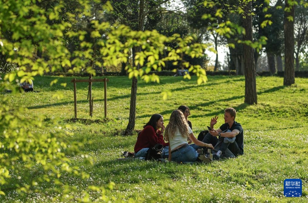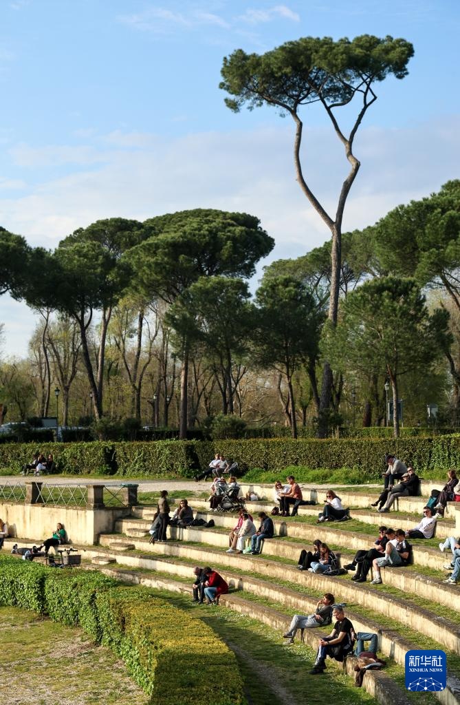 3月29日,人们在意大利首都罗马的博尔盖塞公园休闲。新华社记者 王楷焱 摄