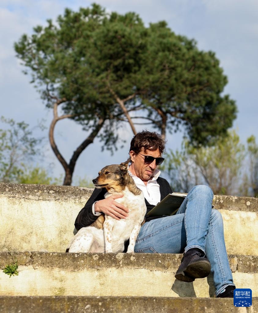 3月29日,一名男子怀抱宠物犬在意大利首都罗马的博尔盖塞公园休闲。新华社记者 王楷焱 摄