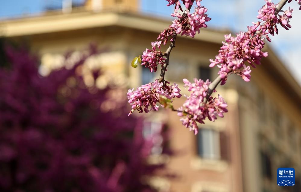这是3月29日在意大利首都罗马拍摄的紫荆花。新华社记者 王楷焱 摄