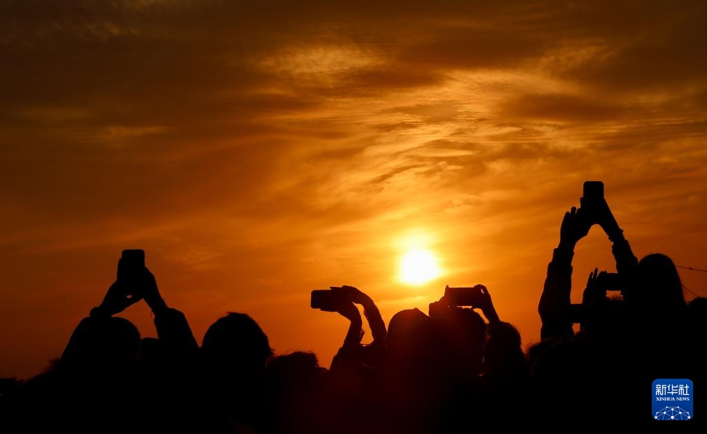 3月29日,人们在意大利首都罗马的苹丘欣赏日落。新华社记者 王楷焱 摄