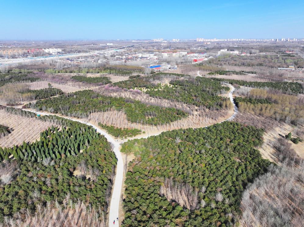 这是2026年3月18日拍摄的雄安新区“千年秀林”(无人机照片)。新华社记者 朱旭东 摄