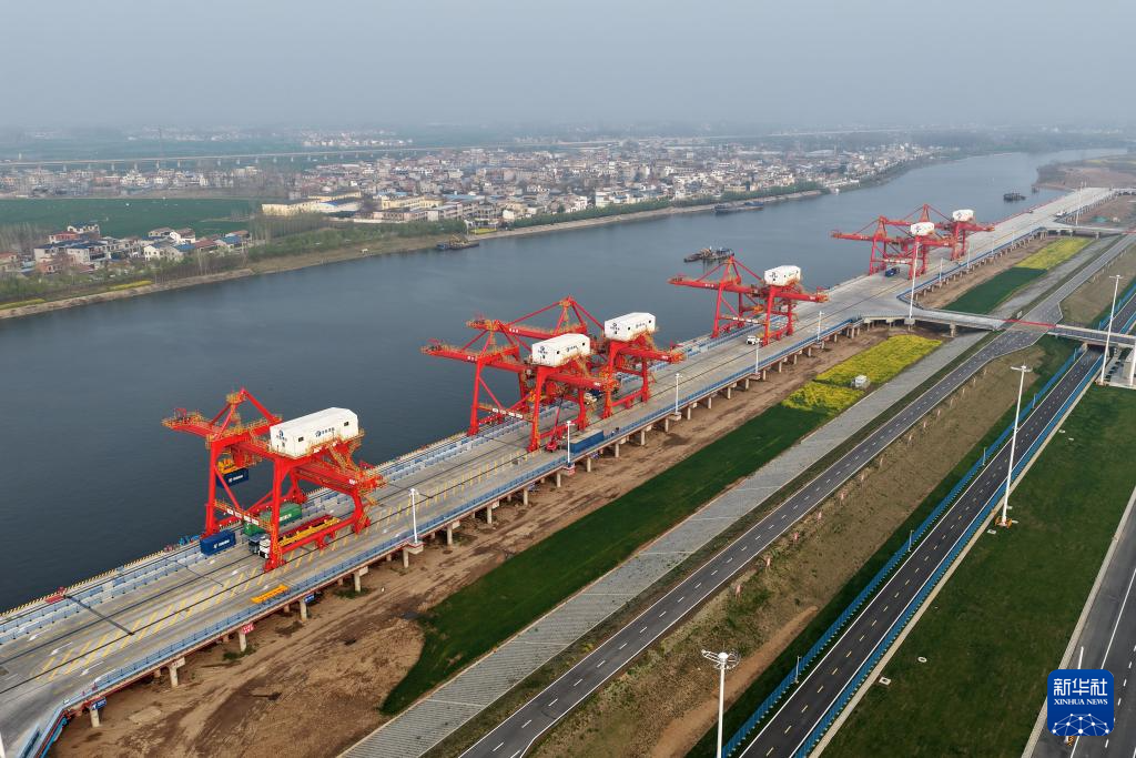 这是3月31日拍摄的周口港中心港区范营作业区(无人机照片)。新华社记者 李嘉南 摄