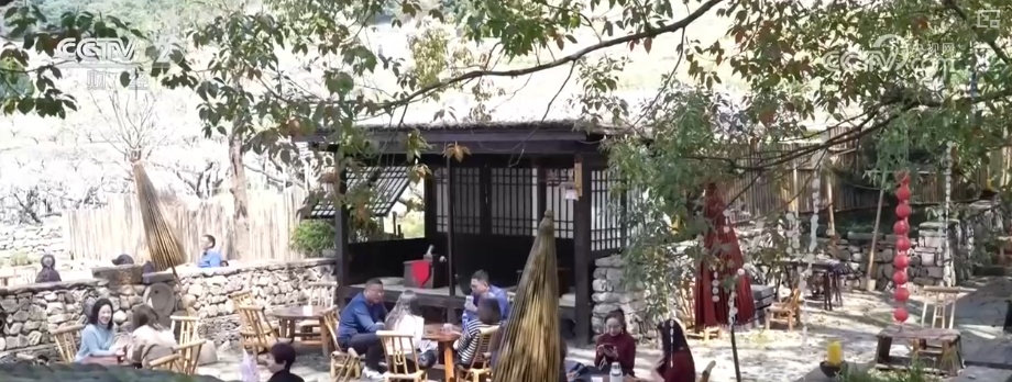 游客在赏花享野趣之余,还能选购豆皮、糍粑、桑葚酒等土特产。到了饭点,附近农家餐馆也是一座难求,游客可以在这里品尝蒸馍子、农家土鸡汤等特色美食。
