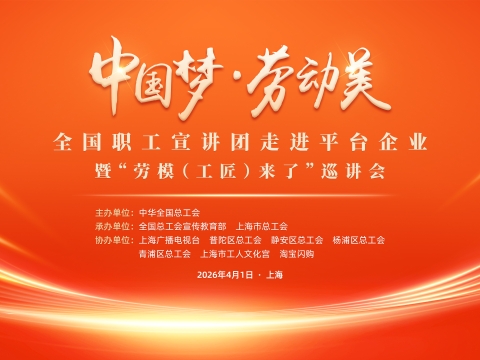 直播回顾|全国职工宣讲团首次走进平台企业2026年4月1日,在上海普陀的淘宝闪购总部,来自网约配送、电梯研发、整车制造、家政服务和法律等行业的劳模工匠走上宣讲台,与骑手们分享成长奋斗故事,进入直播间直击精彩宣讲现场!2026年4月1日(星期三)14:30,中工网首页、微博、视频号同步播出。