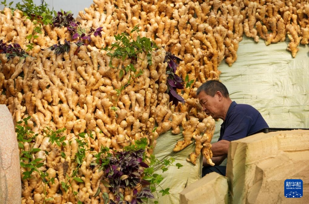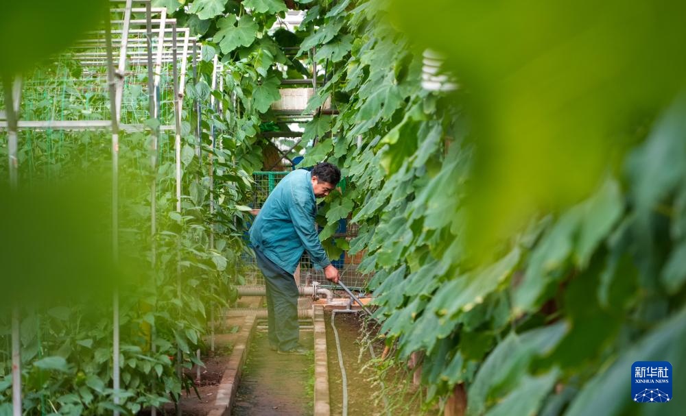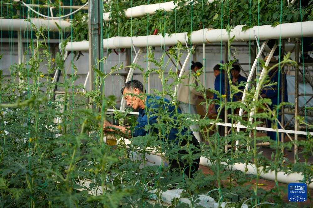 4月1日,在寿光市蔬菜高科技示范园,工作人员养护将在菜博会展出的蔬菜。新华社记者 徐速绘 摄
