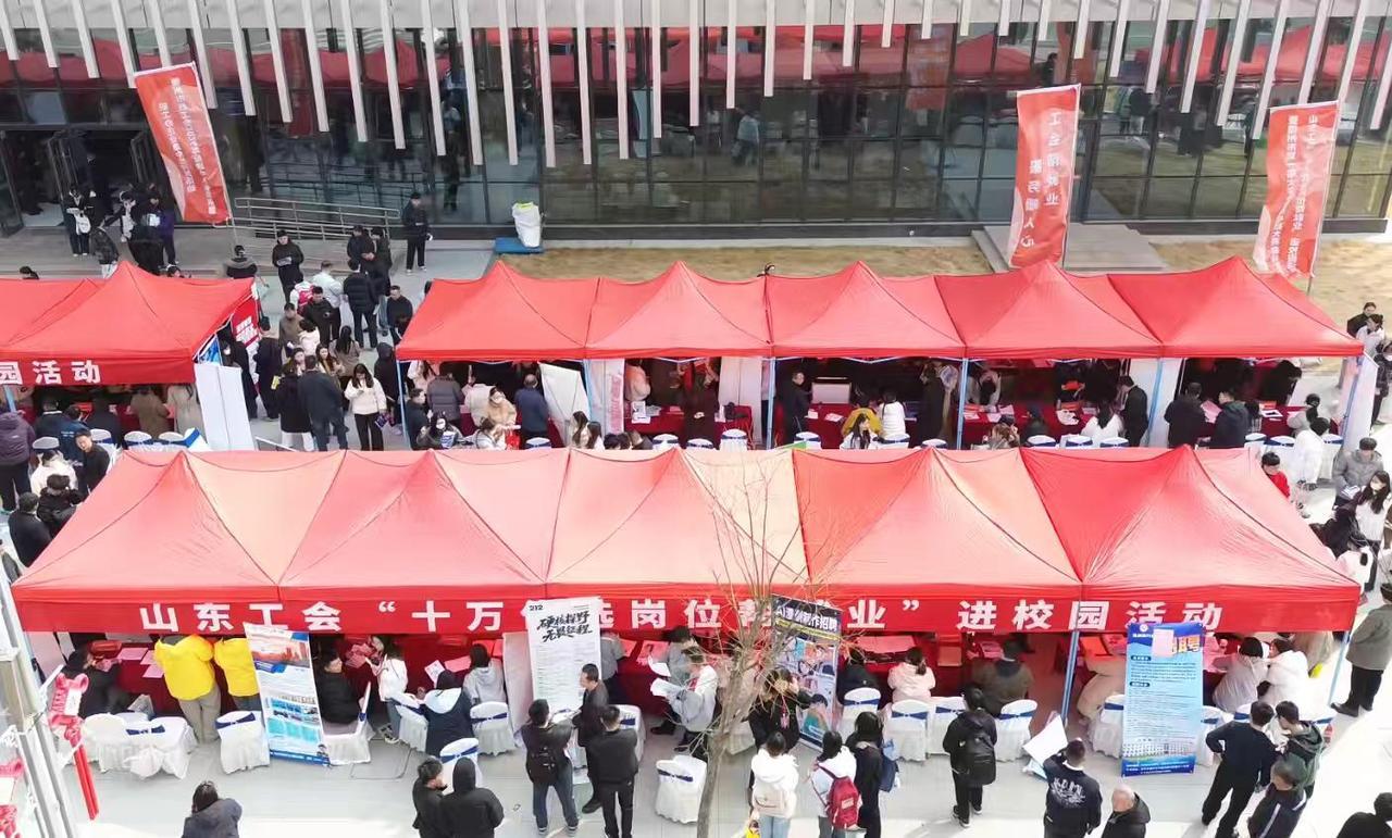图为:3月18日山东工会“十万优选岗位帮就业”现场招聘活动