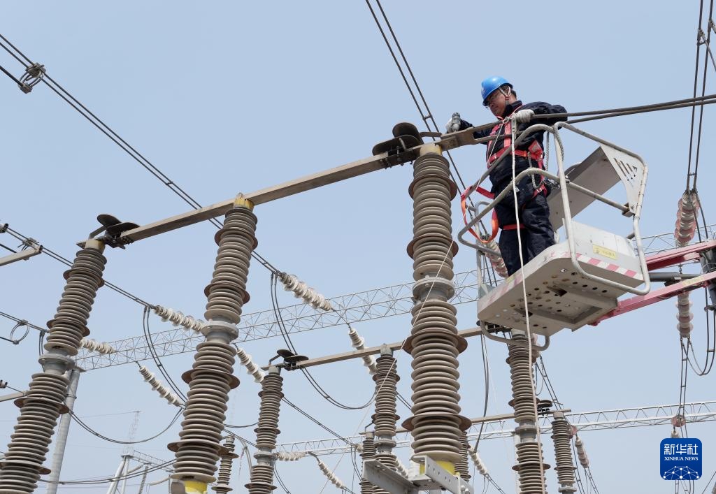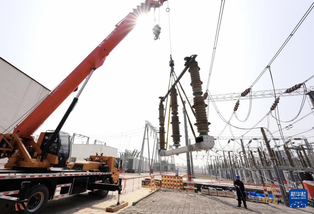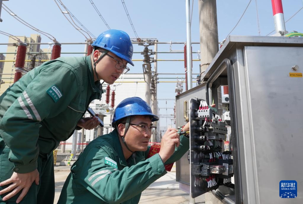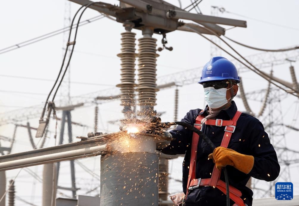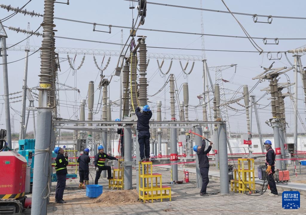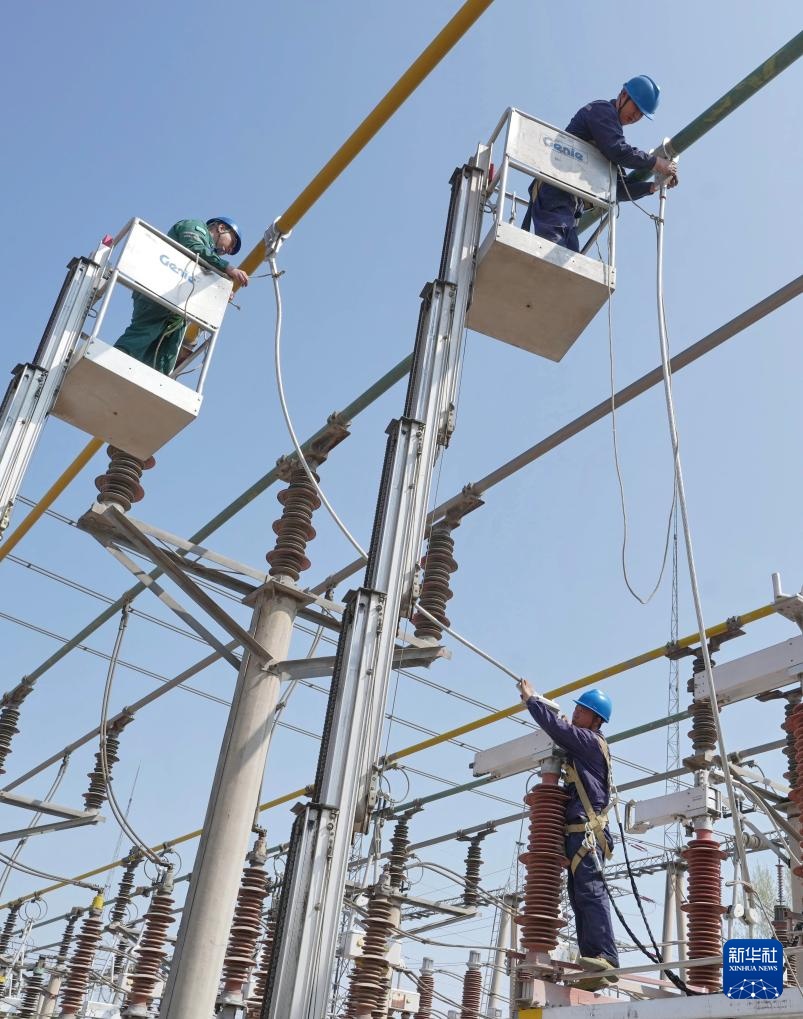 4月1日,国网邢台供电公司的工人在辖区220千伏羊范变电站检修现场工作。新华社记者 杨世尧 摄
