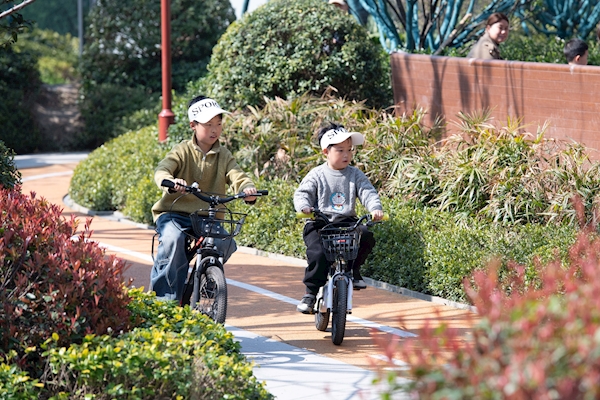 ▲ 3月11日,在安徽省合肥市瑶海区的火车口袋公园,小朋友在骑行。 新华社记者 张端 摄
