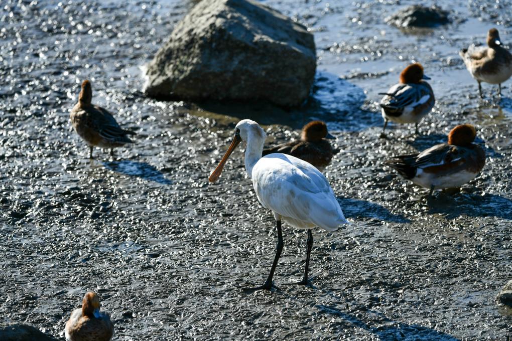 在深圳红树林海滨生态公园,黑脸琵鹭等候鸟在觅食休息。新华社记者 梁旭 摄