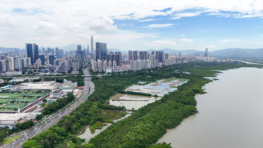 2025年8月,深圳福田红树林湿地(无人机照片)。新华社记者 梁旭 摄
