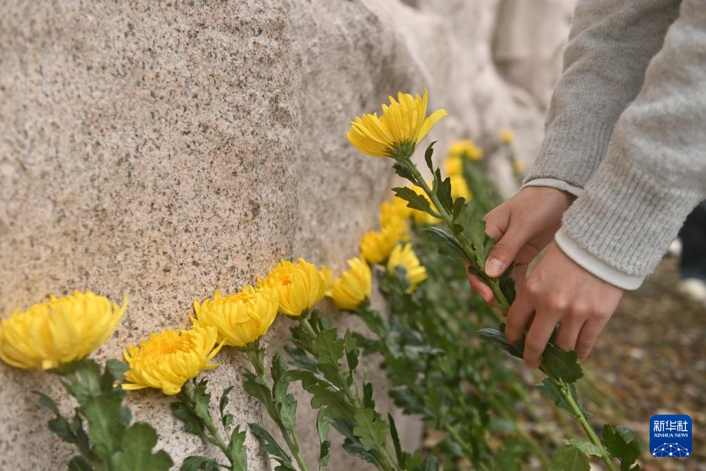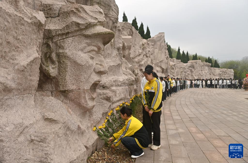 4月2日,在广西全州县红军长征湘江战役纪念园凭吊广场,人们在给红军英烈献花。新华社记者 陆波岸 摄