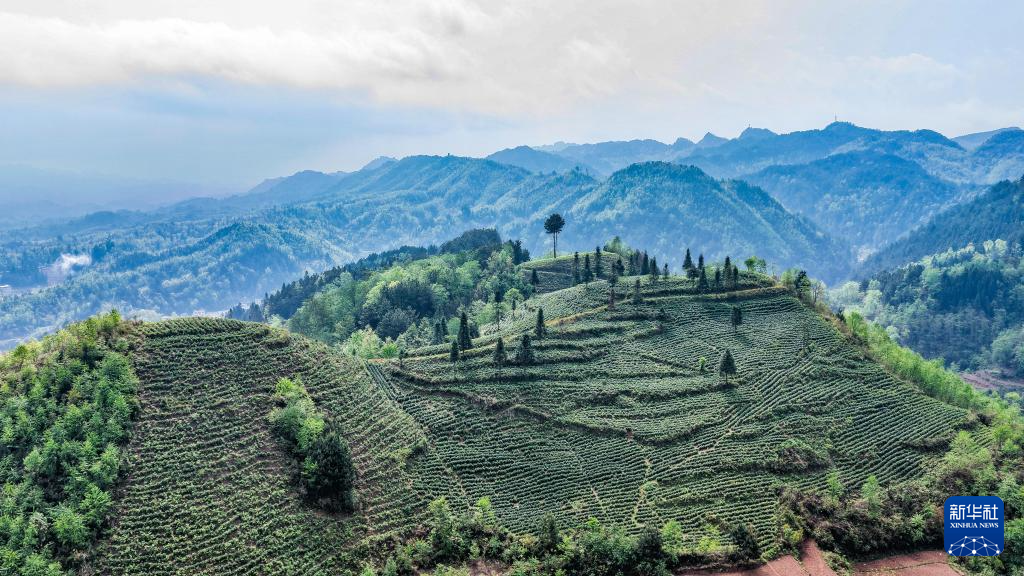 六盘水市六枝特区月亮河彝族布依族苗族乡茶山风光(无人机照片,4月2日摄)。新华社记者 陶亮 摄