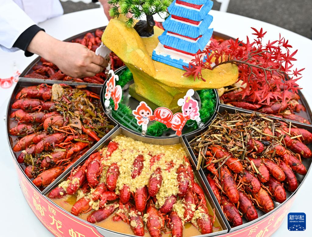 4月3日在龙虾开捕仪式活动现场拍摄的小龙虾菜品。新华社记者 季春鹏 摄
