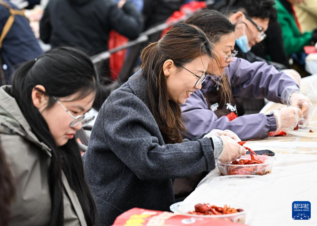 4月3日,人们在小龙虾开捕仪式活动现场品尝小龙虾。新华社记者 季春鹏 摄