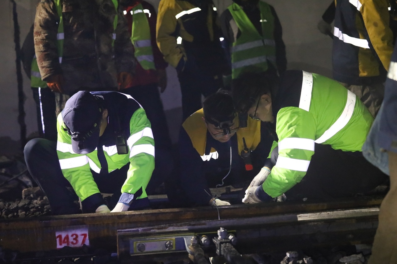 施工进入最后的电务精调阶段,此时大雨如注,职工们依次对道岔缺口、密贴情况进行精细调整,并开展扳动试验和联锁试验。4时5分,230分钟的“天窗”作业圆满完成。雨夜中,崭新的转辙机伫立在轨道旁,如士兵般庄严守护高原铁路安全。(工人日报客户端记者 邢生祥 通讯员 杨琴 刘钊)