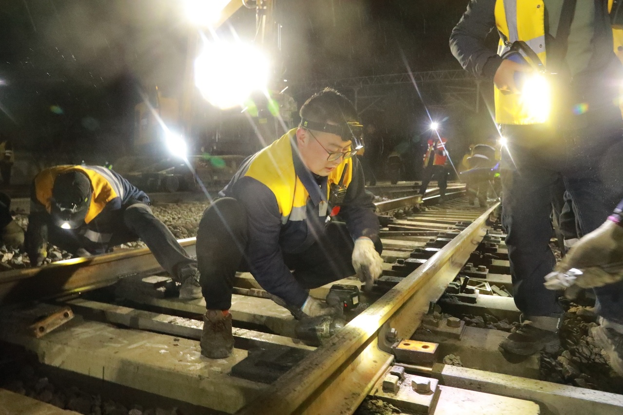 零时15分,“天窗”命令下达,作业人员手提肩扛各种工具冲上线路。“突突突”“嗞嗞嗞”,现场电动扳手、切轨机、挖掘机的马达声交织成一片。陈英平带领工友们迅速走到15号道岔前,麻利地拆除旧道岔及相关电缆配线。