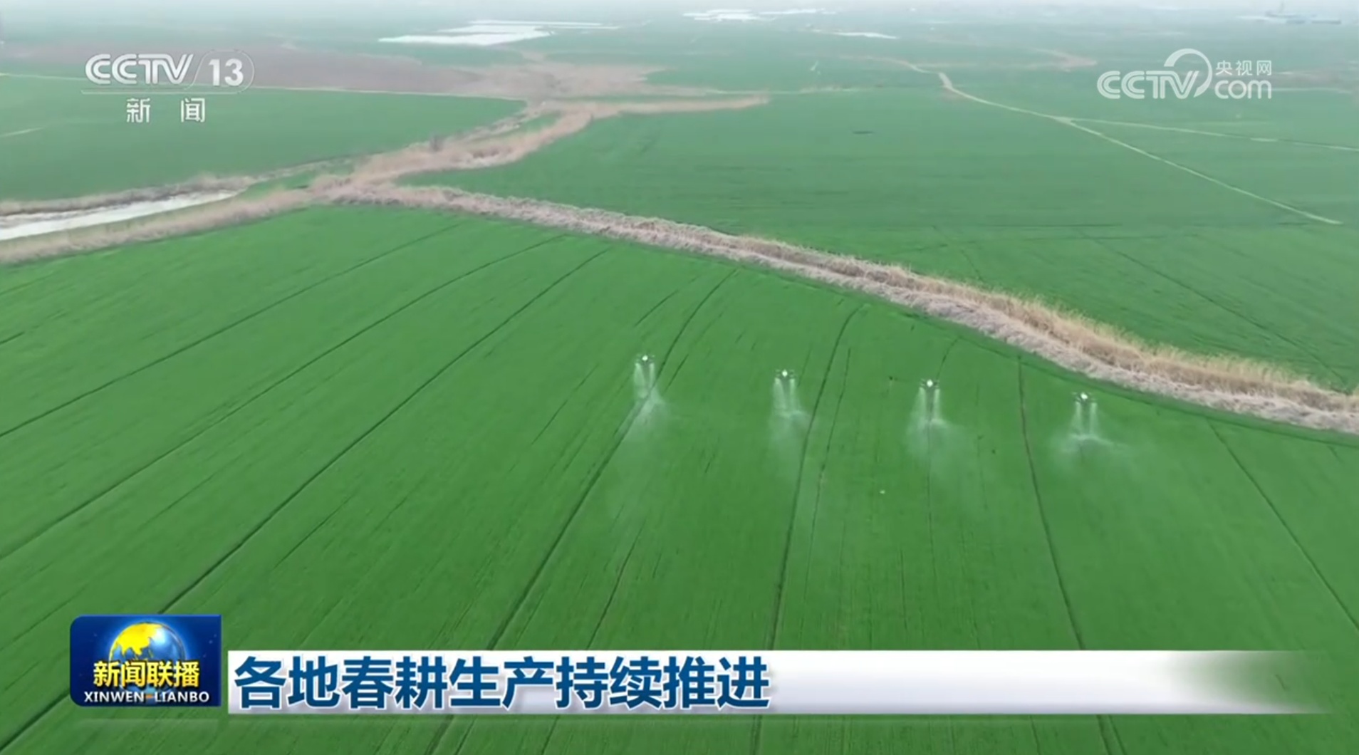 央视网消息(新闻联播):眼下,各地抢抓农时,持续推进春耕生产,为粮食丰产丰收打好基础。
