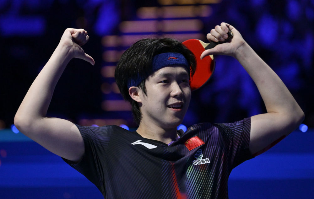 中国选手王楚钦在赛后庆祝胜利。 新华社记者 于洋 摄