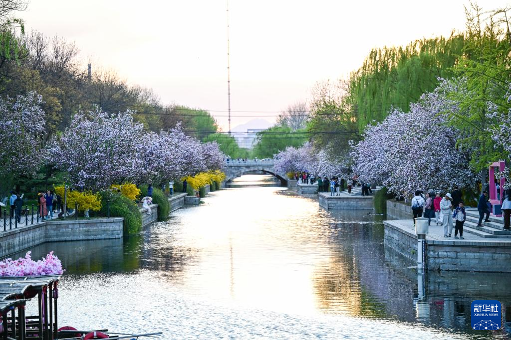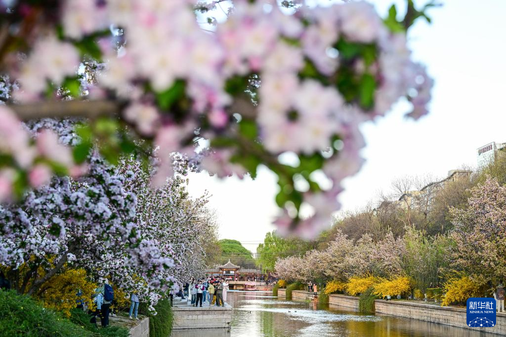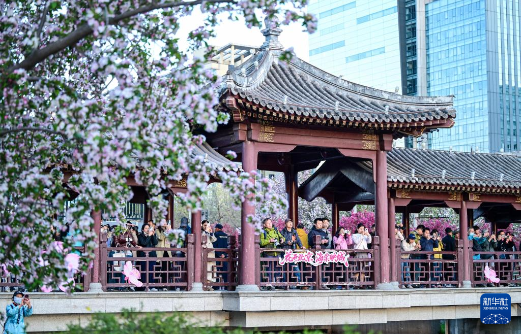 4月5日,人们在北京元大都城垣遗址公园欣赏海棠花。新华社记者 陈晔华 摄
