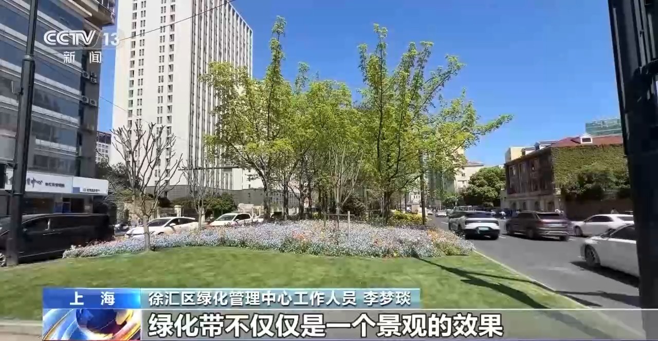 徐汇区绿化管理中心工作人员 李梦琰:我们增加了游步道、休闲座椅,让中央隔离带成了一个口袋公园。绿化带不仅仅是一个景观的效果,更是一个可以休闲、游乐的复合空间。