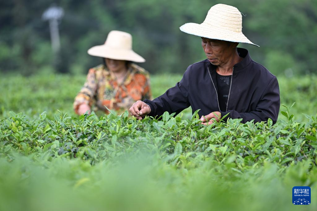 4月11日,茶农在重庆市永川区廖云祥茶树种植基地采茶。新华社记者 王全超 摄