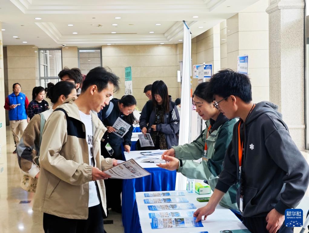 4月15日,在复旦大学举行的“保租房毕业季进校园”(第五季)首场活动现场,人们在了解房源信息。新华社记者 刘颖 摄